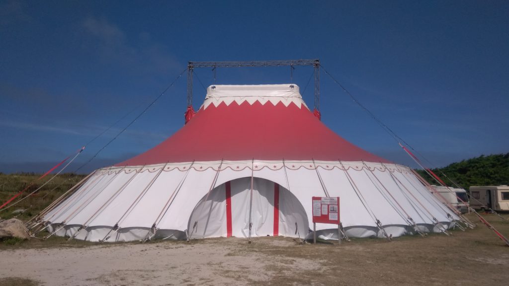 L’été, nous montons notre chapiteau au Dossen à Santec. Nous y proposons des stages de découverte et de spécialisation. Nous programmons aussi des spectacles amateurs et professionnels dont le spectacle de la cie Le Cri du Léon, création annuelle de nos élèves confirmés. Enfin, une soirée cinéma à lieu chaque semaine.
